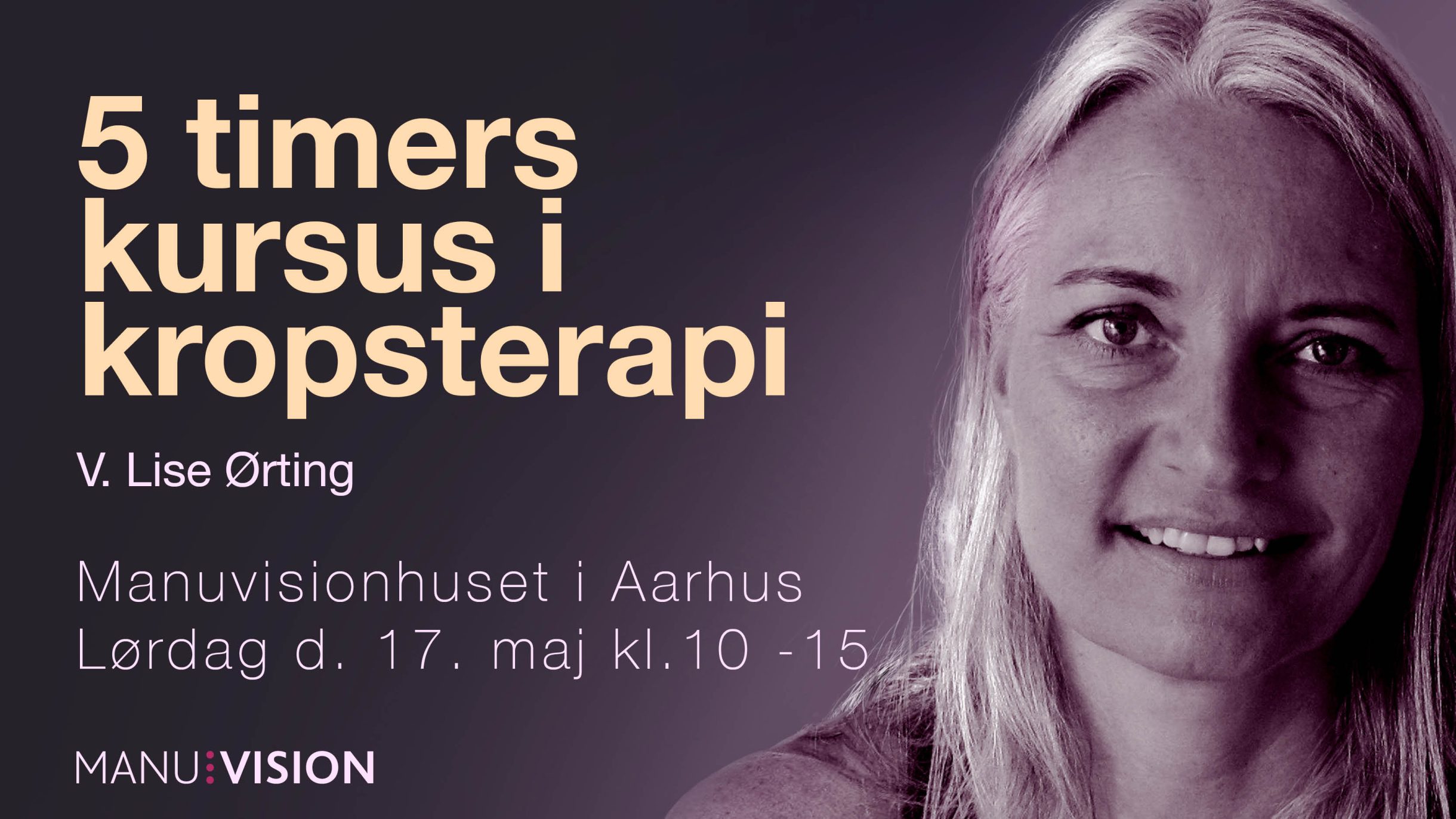 Manuvision Aarhus Mejlgade, over gården 28, 1 sal, Aarhus, Region Midtjylland, DenmarkKORT kursus Til dig, der er nysgerrig på kropsterapi og MÅSKE ER interesseret i Manuvision uddannelsen. Du får en forsmag på, hvordan det er at stå ved en briks og behandle Og Bliver introduceret til basale greb og teknikker. Lises kursus i Aarhus tager dig igennem en kort introduktion til det kropsterapeutiske håndværk. Vi vil...